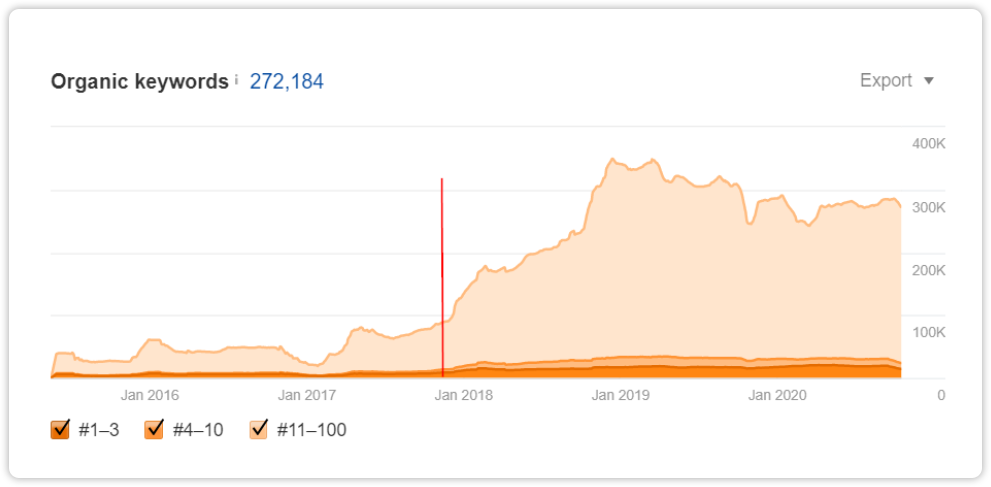 We also achieved lightning-fast new client set-up time – it took only 6 weeks to onboard a new client on the platform, including initial SEO analysis, on-page SEO, technical audit & tracking set-up. The result of all this hard work – EveryMundo was among the top 5 finalists in Search Engine Land Awards for “Best Overall SEO Initiative – Enterprise” (2019).