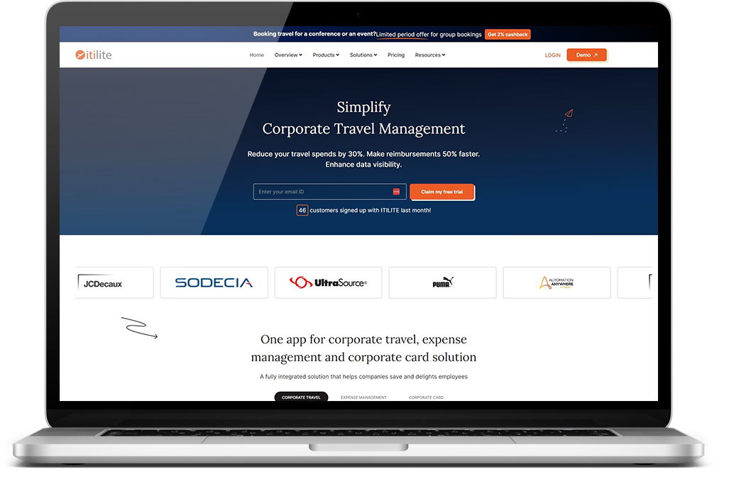 Itilite, a leading Corporate Travel and Expense Management Solution Provider, helps companies reduce T&E by offering all-in-one travel booking, streamlining expense reimbursement, and presenting a unified view of all T&E payments