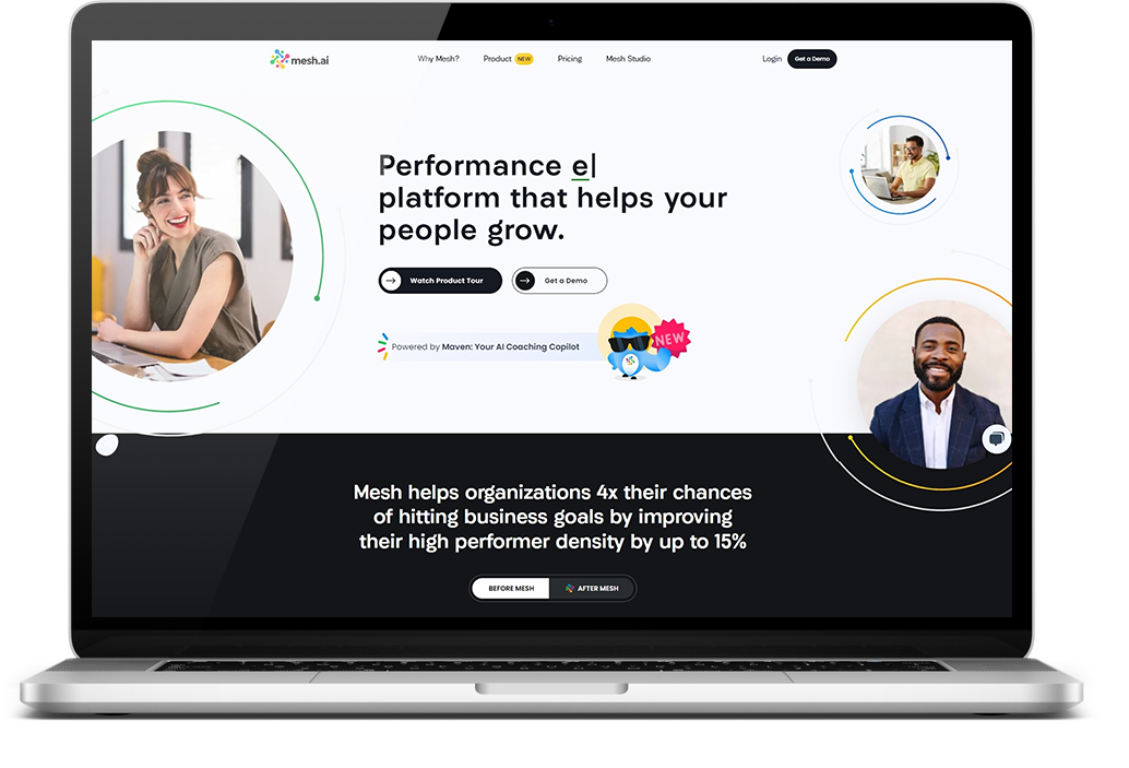 Mesh.ai is a performance management system that leverages data and artificial intelligence to help leaders create engaged, high-performing teams.